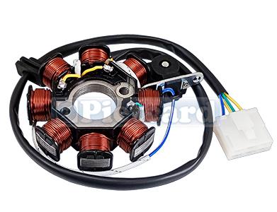 Estator monofásico de 8 polos aislado de masa. // Diámetro Interior: 29.00 mm / Diámetro Exterior: 88.00 mm / Distancia entre centros de agujeros: 41.00 mm / Altura Núcleo: 29.50 mm. Sensor código 3063.