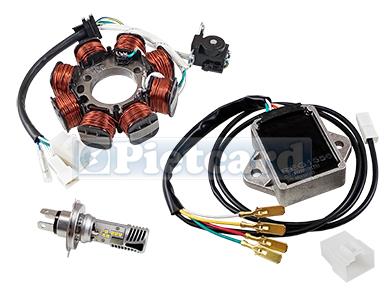 Kit Para solución de la carga de batería en TITAN 125/150. Despiece: Estator 336, Regulador 1556 y lámpara LED (se recomienda lámpara LED OSRAM 7485CW 8/12W).