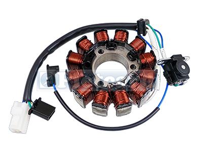 Estator Monofásico de 12 polos aislado de masa. // Diámetro Interior: 35.00 mm / Diámetro Exterior: 93.00 mm / Distancia entre centros de agujeros: 38.00 mm / Altura Núcleo: 31.25 mm. Sensor código 3086.